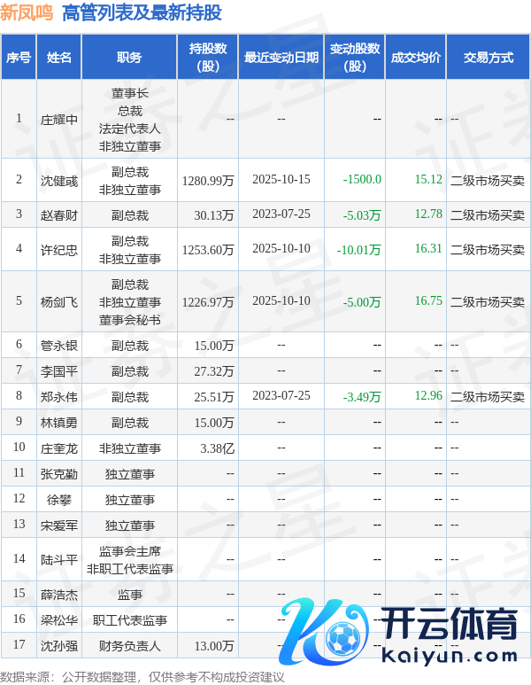 新凤鸣近半年内的董监高及中枢手艺东说念主员增减抓敬佩如下: