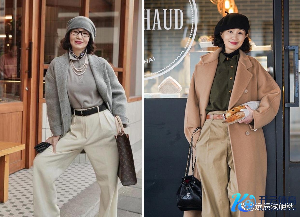 比如:基础款大衣和棒球帽的CP组合,极简+闲适感的蚁合,服装面孔和帽子相反相成,这么的打扮对中年女性超等值得推选。